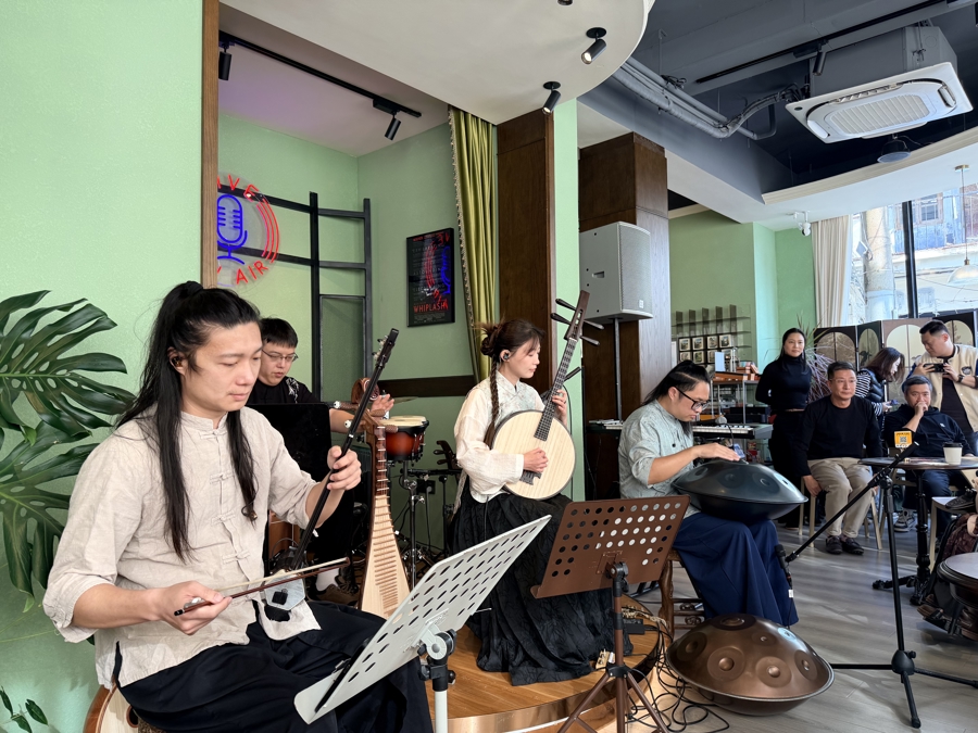 二胡、中阮、琵琶,箱鼓、手碟,看似不相干的传统民族乐器和新兴打击乐器,在这方小小舞台上,碰撞出一场充满新意的“音乐下午茶”。